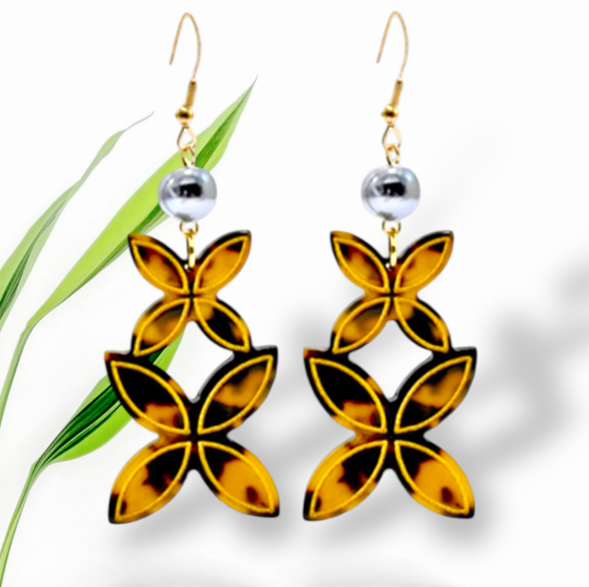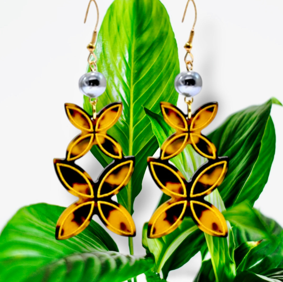 - Design: Tiare flower motif with black pearl accents
