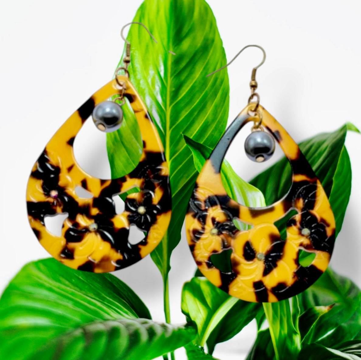 Laie - Pre-Order Faux Turtle Shell With Black Pearl Earrings