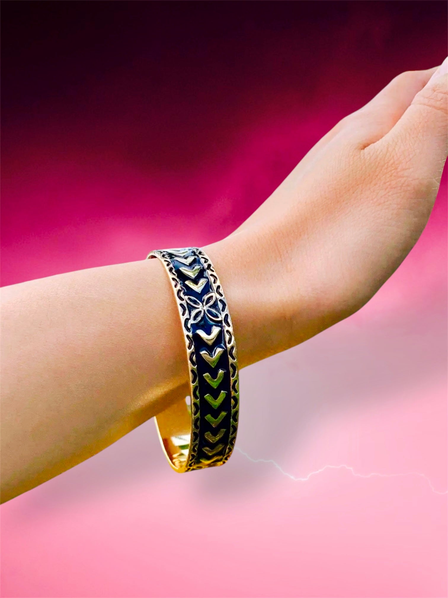 - Design: Hawaiian Hamilton-inspired bangle featuring elegant black enameled accents