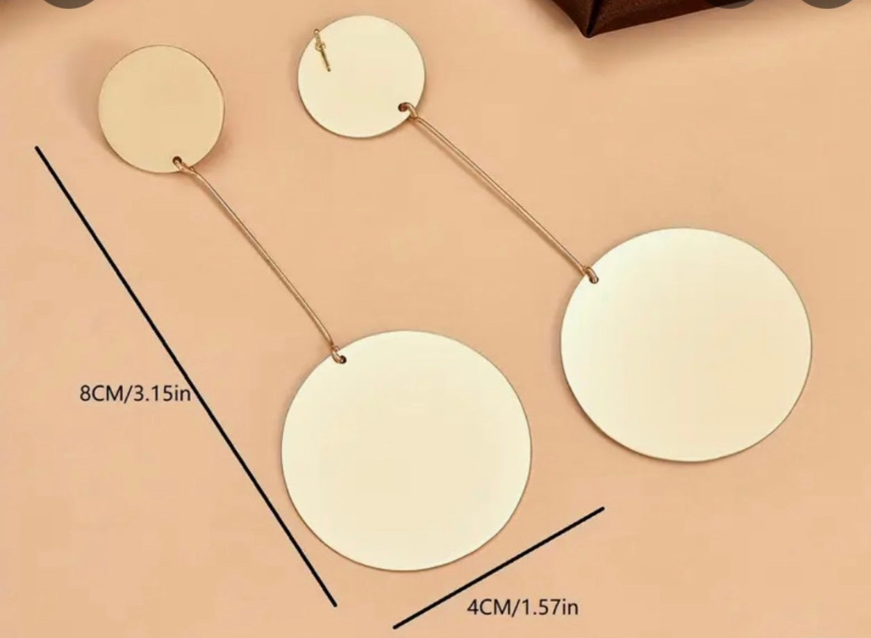 Command attention with these stunning 4.5-inch round gold dangling earrings that blend classic elegance with bold, contemporary style. These show-stopping statement pieces feature beautiful circular designs that catch the light with every movement.