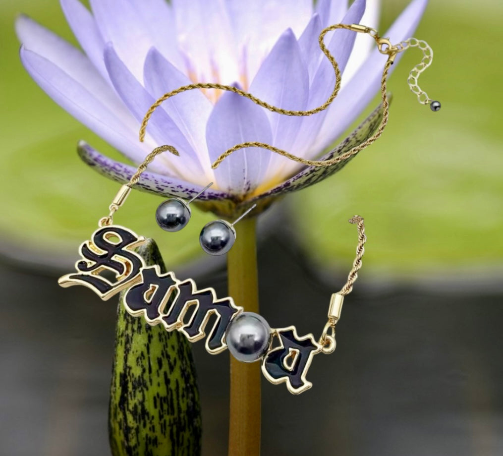 Teuila - Black Enamel Tribal Polynesian Jewelry Set - Ready to Ship
